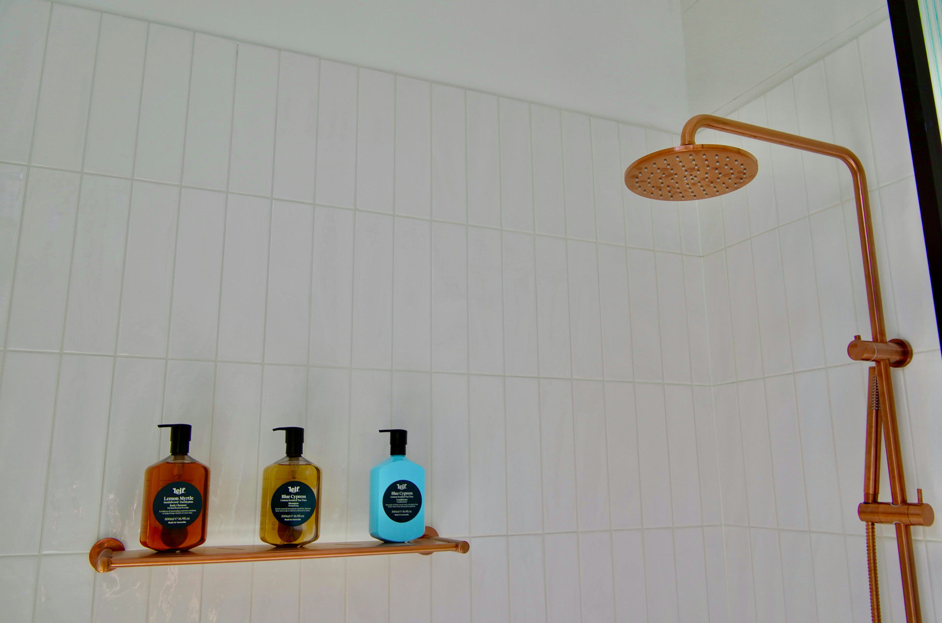 - To brusehoveder: Rainshower Cosmopolitan 210 hovedbruser og Sena håndbruser.
